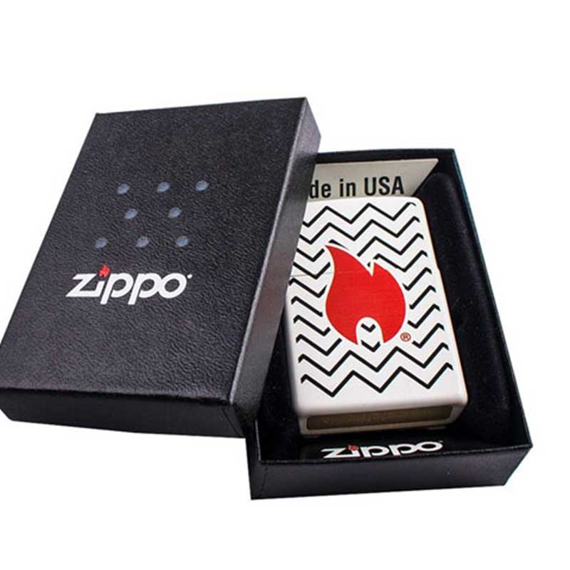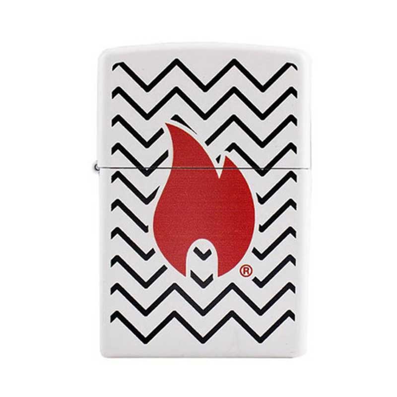 فندک زیپو طرح شعله با لوگوی اختصاصی ZIPPO روی خطوط مورب یکی از کارهای قدیمی کمپانی به حساب می آید که روی بدنه برنجی سفید مات طراحی شده است که هم کار کلکسیونی هست و هم به دلیل طراحی روی بدنه سفید مات برای مصرف روتین عالی هست.
