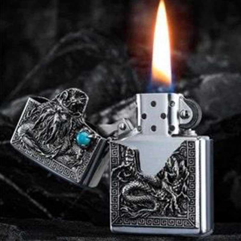فندک چیف اژدها بدنه فلزی مستحکم همراه با پلاک برجسته اژدها و در مرکز آن نگین آبی رنگ که ترکیبی از هنر و جزئیات لوکس را به نمایش می‌گذارد. این فندک برای کسانی طراحی شده که