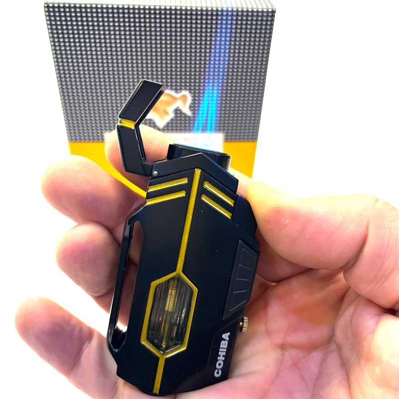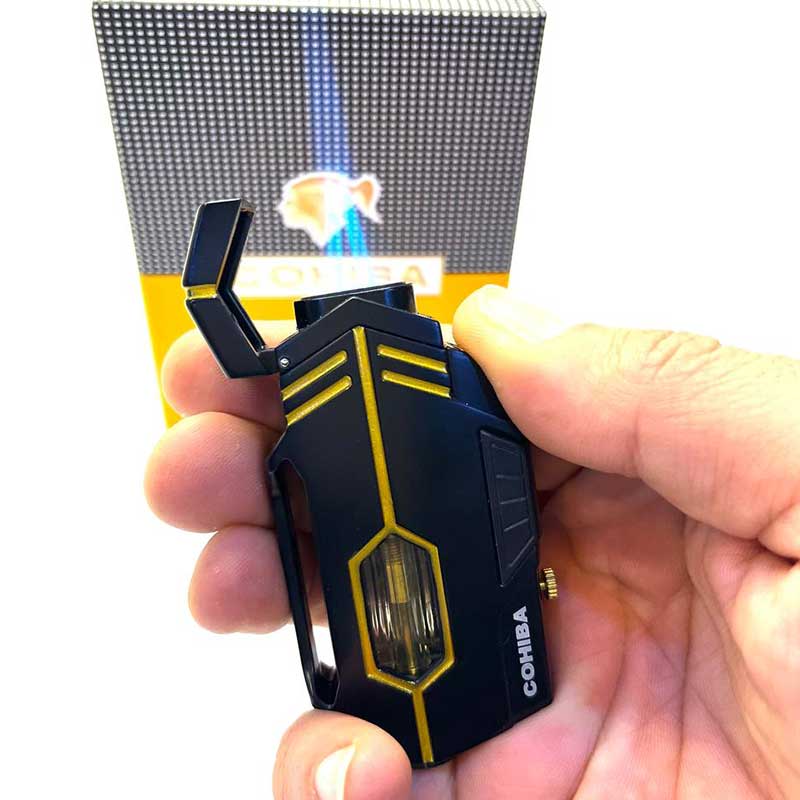 فندک کوهیبا مشکی دو شعله مورب یک انتخاب ایده آل برای کسانی است که به کیفیت شعله اهمیت می‌دهند. شعله‌های دوگانه تورچ قدرت کافی برای روشن کردن سیگار برگ را در سریع‌ترین زمان ممکن دارند و زاویه مورب باعث می‌شود آتش به‌صورت دقیق و تمیز روی سطح سیگار پخش شود و فقط یه کلکسیونر فندک اتمی می داند که این فندک از چه کیقیتی برخوردار است.