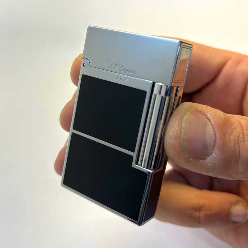 فندک دوپونت مشکی نقرهای بدنه صاف هایکپی تجسمی از ظرافت مدرن و اصالت کلاسیک است. طراحی این مدل الهامگرفته از سبک مینیمال فندکهای کلاسیک برند S.T. Dupont Paris بوده و در عین سادگی، جلوهای بسیار شیک و خاص دارد.