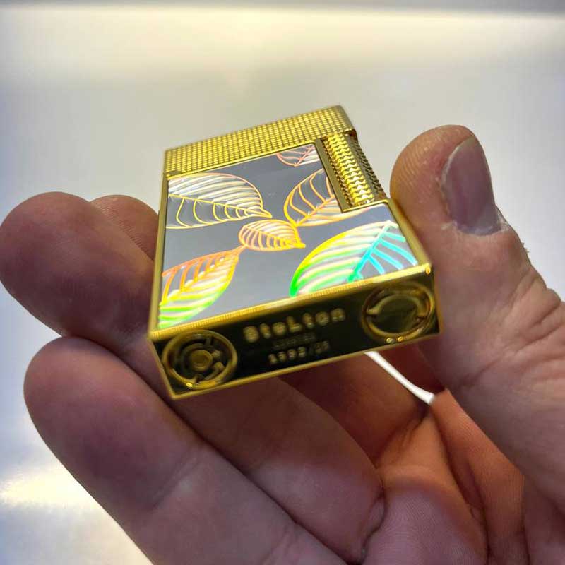 فندک اس‌تی التون اصلی طرح دوپونت با بدنه روکش صدف طبیعی طرح برگ، صدای دری سه‌بعدی، کیفیت ساخت بالا و پک کامل هدیه شامل جعبه شیک، سنگ یدک و فرچه صدای درب این فندک معرکه هست و طرح دایموند هد که در سطح دنیا بسیار پرطرفدار هست این مدل نایاب در سطح دنیا بی نظیر است.