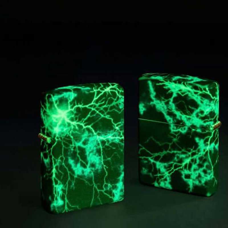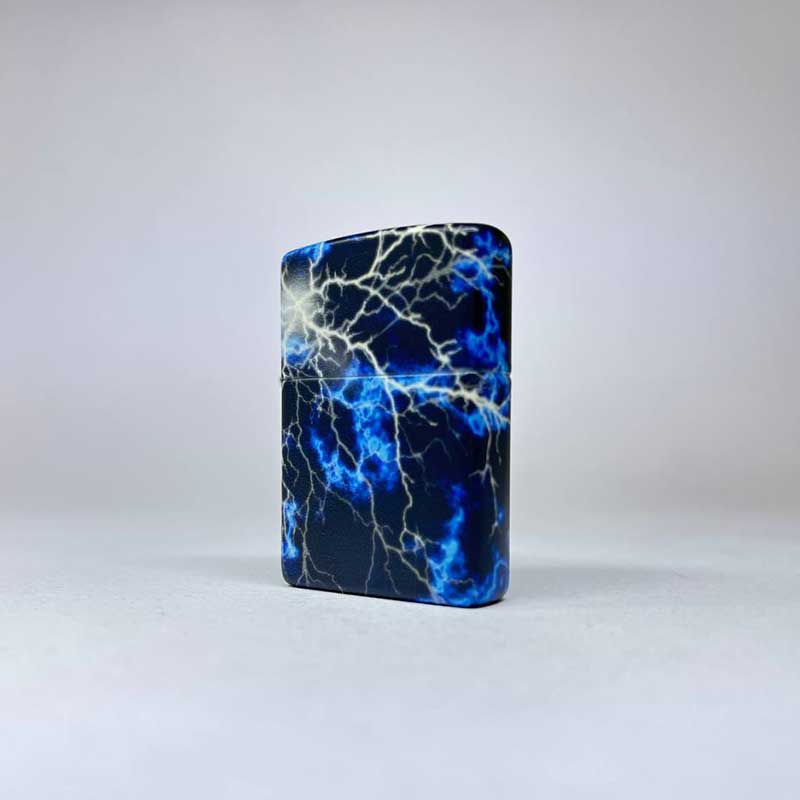 فندک زیپو شبرنگ مدل آذرخش از برند زیپو، طرح خاصی دارد که روی سطح بدنه شبکه‌ای پیچیده از رگه‌های شعله‌مانند و خطوط آذرخش را به‌نمایش می‌گذارد. این الگوها در محیط روشن خودنمایی می‌کنند و در تاریکی با پوشش «درخشان در تاریکی» (Glow-in-the-Dark) جلوه‌ای متفاوت پیدا می‌کنند.