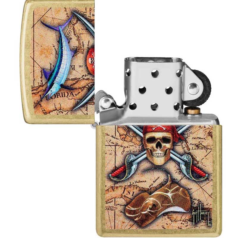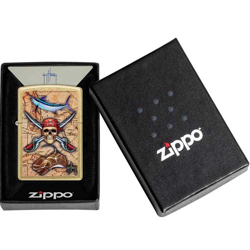 فندک زیپو دزدان دریایی یکی از مدل‌های خاص و هنری برند زیپو است که با طراحی منحصربه‌فرد هنرمند گای هاروی ساخته شده است. در این مدل، تصویر رنگی نقشه گنج و جمجمه دزدان دریایی روی بدنه فلزی برنجی نقش بسته که جلوه‌ای ماجراجویانه و لوکس به فندک داده است.