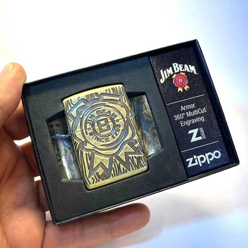 فندک زیپو جیم بیم Jim Beam اورجینال از سری لاکچری آرمور کیس (Armor Case) یکی از لوکس ترین مدل های تولید سال ۲۰۲۱ کمپانی Zippo است. این مدل با طراحی فوق العاده دقیق و کیفیت ساخت بالا، یادآور همکاری طولانی مدت زیپو با برند معروف جیم بیم که برای کلکسیون فندک بسیار جذاب است.
